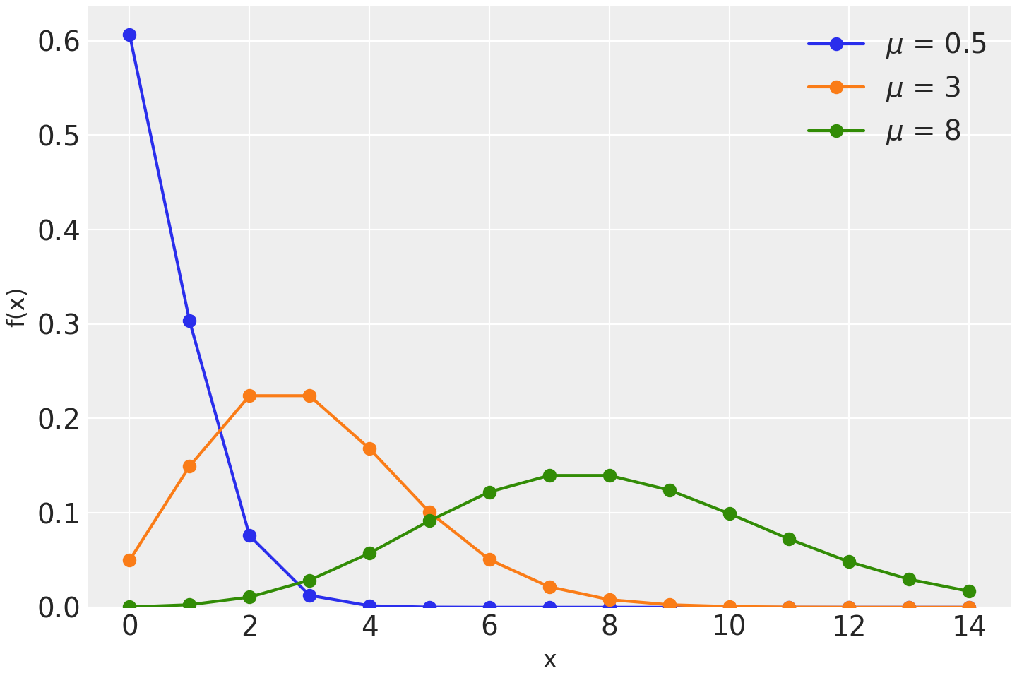 Often used to model the number of events occurring in a fixed period of time when the times at which events occur are independent. The pmf of this distribution is